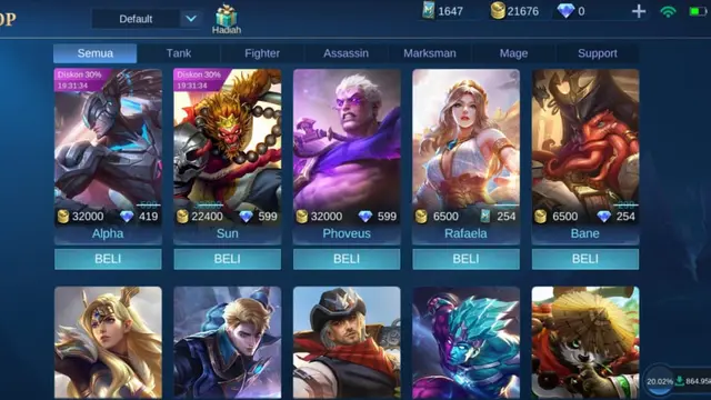 Tak bisa dipungkiri kehadiran berbagai karakter hero dengan kekuatan dan visual yang menarik menjadi magnet Mobile Legends begitu dicintai semua kalangan. Sejak meluncur pada 2016 lalu, Moonton terus memberikan pembaruan ke game mobile-nya. Hingga Juni 2023, total ada lebih dari 120 hero Mobile Legends yang terbagi dalam berbagai role dan lane.Seperti diketahui, pada game Mobile Legends terdapat enam jenis hero yaitu Tank, Support, Mage, Assassin, Fighter, dan Marksman. Sudah tentu satu jenis memiliki banyak hero. Adapun role-nya dari masing-masing hero mulai dari offlaner, core atau carry, mid laner, jungler, sidelaner, offlaner dan masih banyak lagi. Sudah banyak jenisnya, kekuatan beragam, menarik lagi visualnya. Wajar banget, para pemain betah memainkan Mobile Legends dan penggemarnya semakin bertumbuh.